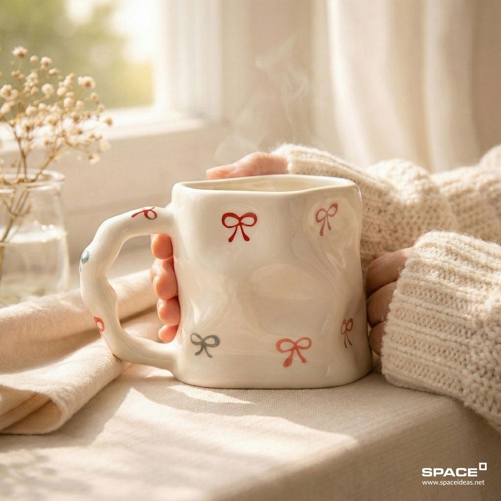 : a delicate curvy silhouette and carefully designed bows that bring sweet, playful vibes to every sip. A daily staple that warms both your hands and your heart.